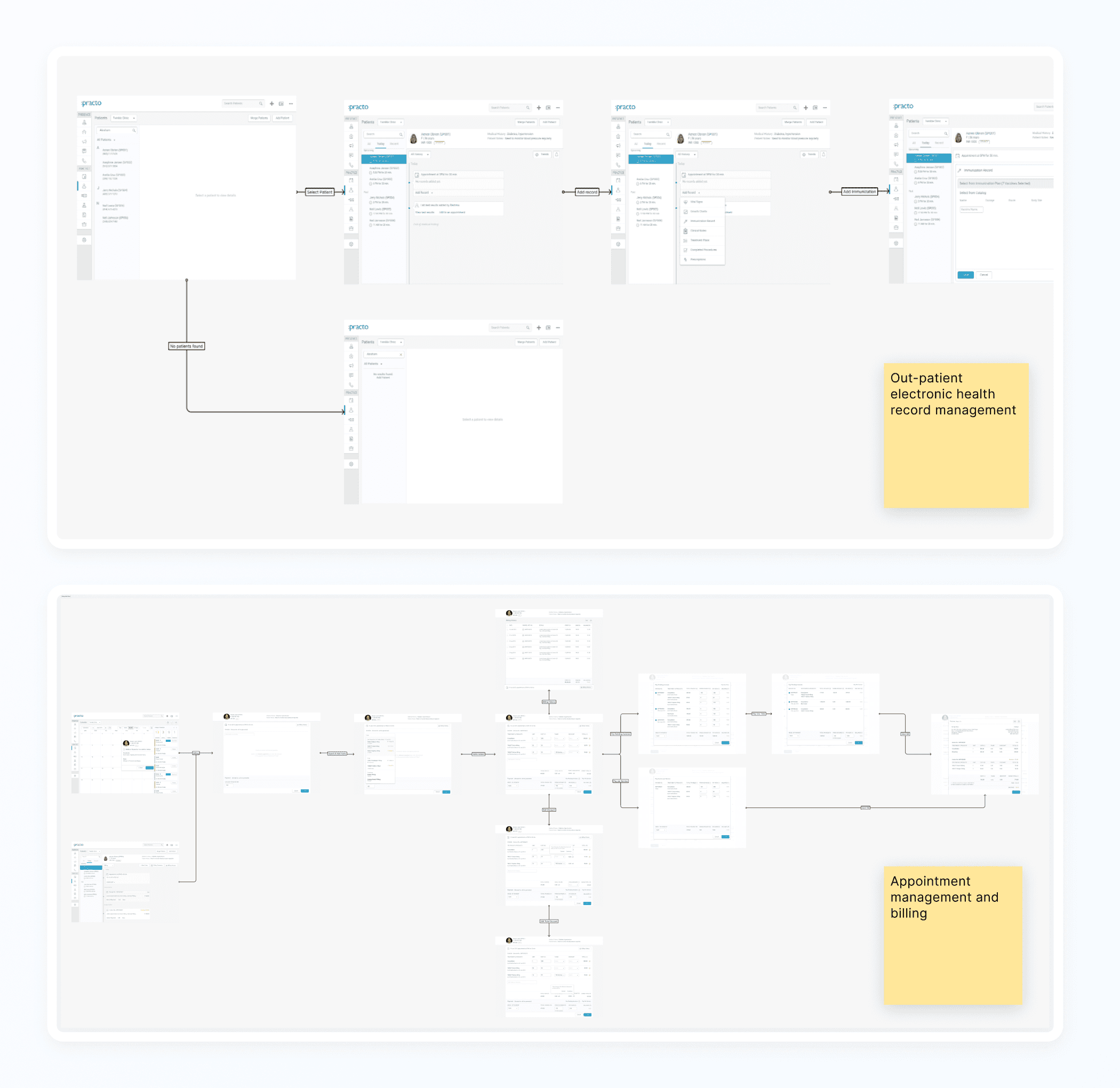 Before redesigning the interface, I mapped how clinics actually operate — from consultation to prescription, peak-hour scheduling, billing cycles, and administrative review. These weren’t isolated screens to improve. They were continuous operational workflows that the system needed to support seamlessly.